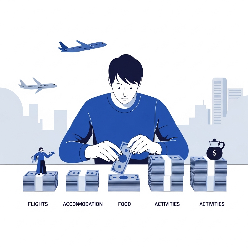 크게 항공권, 숙소, 식비, 교통비, 관광/액티비티, 쇼핑/기념품, 비상금 등으로 카테고리를 나누고, 각 항목에 예상 금액을 배정해 보세요. 너무 빠듯하게 잡기보다는 10~20% 정도의 비상금을 꼭 포함하는 것이 중요해요!
