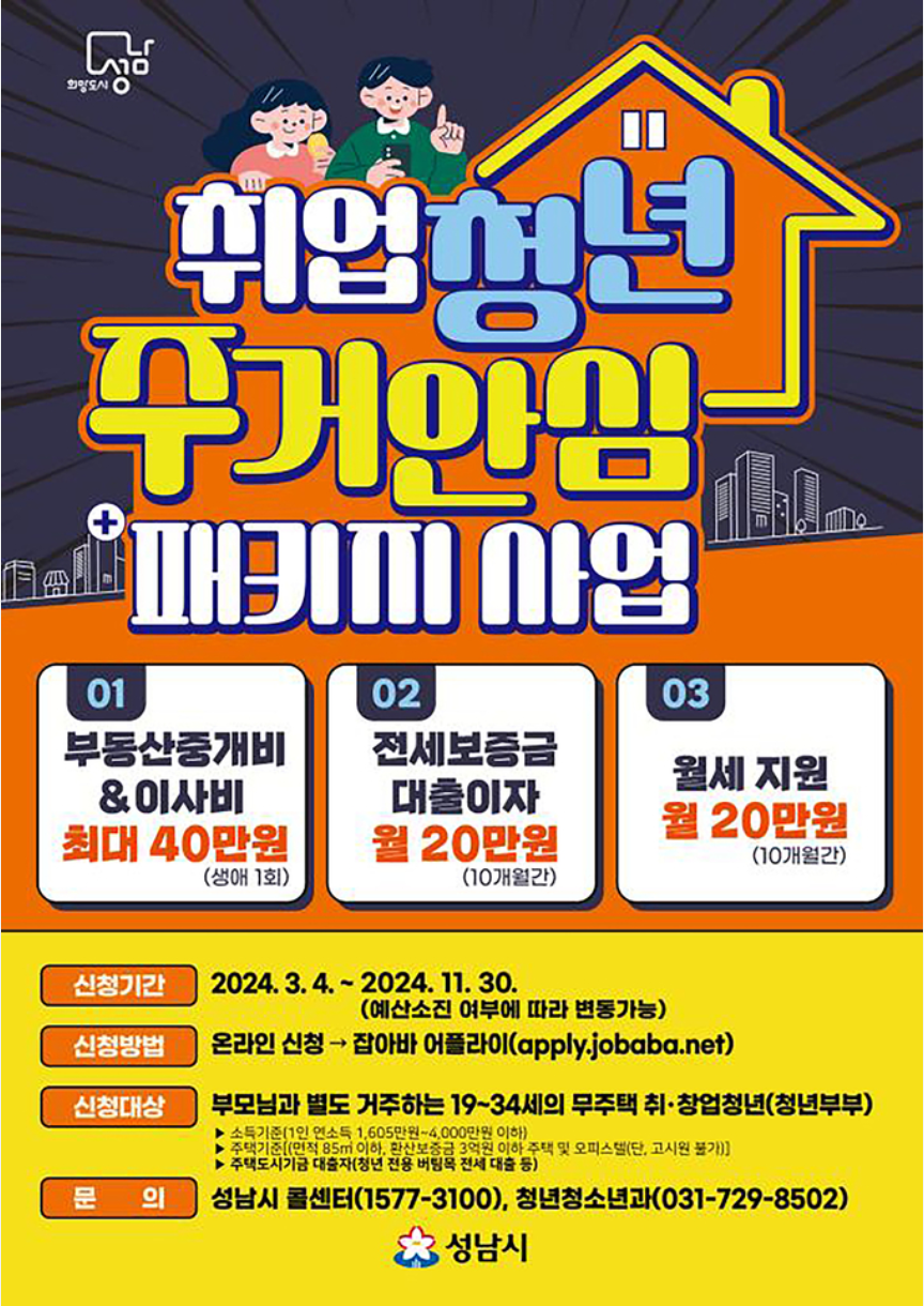 | 청년 보증금 대출 상품 | 주택도시기금 등에서 저금리로 보증금 대출 지원 (최대 7천만원, 이자율 1%대) | 만 19~34세, 소득 및 자산 기준 충족 무주택자 |
