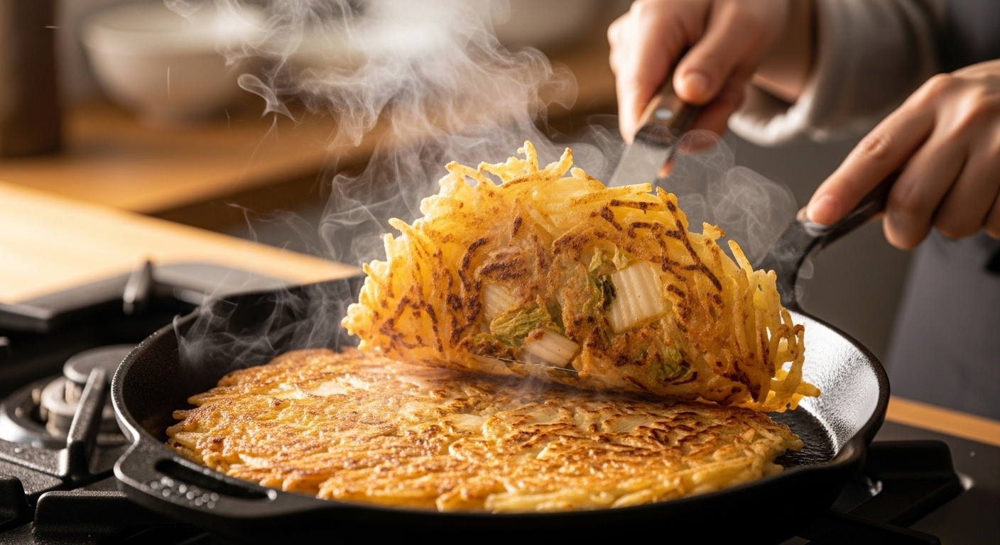 A1: 신 김치가 가장 잘 어울립니다. 김치 특유의 시큼한 맛이 감자의 고소함과 어우러져 더욱 깊은 맛을 냅니다. 푹 익은 김장 김치도 좋고, 볶음용 김치를 사용해도 좋습니다.